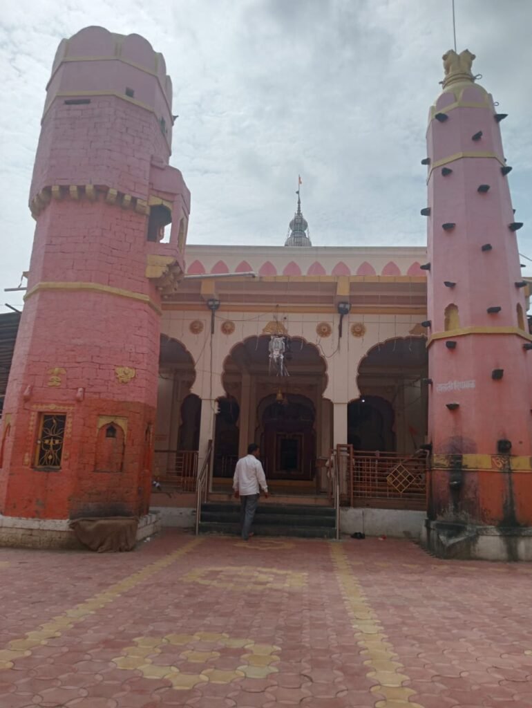 श्री रेणूकामातेच्या मंदिरासमोर बांधकाम केलेली दिपमाळ आहे. सुमारे ३५ फुट उंचीची ही दिपमाळ विट आणि चुन्यामध्ये भरीव अशी बांधण्यात आलेली आहे. दिपमाळेच्या वरच्या बाजूस जाऊन ती हलवण्यात आली तर बुडापासून ही दिपमाळ हलते. बांधकामाचे हे नेमके तंत्रज्ञान काय आहे याचा उलगडा मात्र आजही कोणाला झालेला नाही. या मंदिराच्या जवळ एक बारव होती परंतू ती बुजवण्यात आलेली आहे.