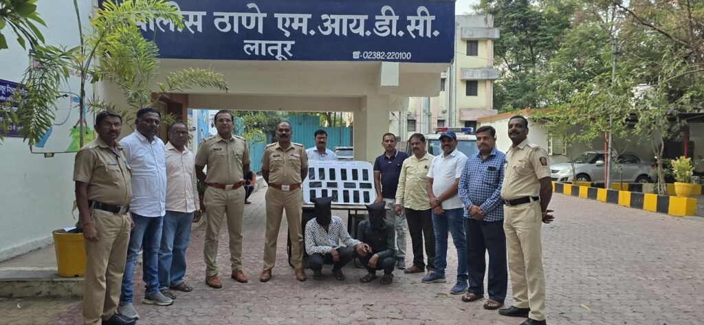 दिनांक 22/04/2025 रोजी पोलीस ठाणे एमआयडीसी च्या गुन्हे प्रकटन शाखेने, चोरलेले मोबाईलची विक्री करण्यासाठी फिरत असताना कीर्ती चौक परिसरातून दोघांना ताब्यात घेतले .त्यांचे जवळील त्या बँगेमध्ये काही मोबाईल असल्याचे दिसले त्यास सदर मोबाईलबाबत विचारपुस केली असता समाधानकारक उत्तरे देत नव्हते . बॅगेतील मोबाईल लातुर शहरातील वेगवेगळया ठिकाणाहुन चोरले असल्याचे कबुल केले. ओम मुरलीधर सुर्यवंशी, वय 19 वर्षे रा. हाडको कॉलनी लातुर. सतीष नरसींग माने, वय 22 वर्षे रा. हाडको कॉलनी . या दोघांना गुरनं. 321/2025 कलम 303 (2) बीएनएस प्रमाणे दाखल असलेल्या गुन्हयात चोरी गेलेला माबाईल असल्याचे निष्पन्न झाल्याने सदर गुन्हयामध्ये अटक करण्यात आली . त्यांचे ताब्यातून वेगवेगळ्या कंपनीचे एकुण 16 मोबाईल किंमत अंदाज 1,16,000/-रुपये किंमतीचे मोबाईल हस्तगत करण्यात आले आहेत. पुढील तपास पोलीस अंमलदार गोविंद चामे हे करत आहेत.