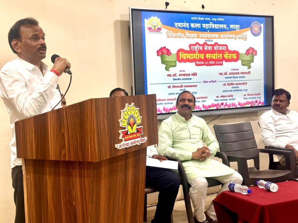 लातूर, दि. २३ एप्रिल २०२४ (प्रतिनिधी) – विभागीय शिक्षण उपसंचालक कार्यालय, लातूर आणि दयानंद कला महाविद्यालय, लातूर यांच्या संयुक्त विद्यमाने राष्ट्रीय सेवा योजनेतील कार्यक्रमाधिकाऱ्यांची लातूर विभागीय बैठक यशस्वीरित्या पार पडली. या बैठकीस विविध जिल्ह्यांतील कार्यक्रमाधिकारी मोठ्या संख्येने उपस्थित होते.