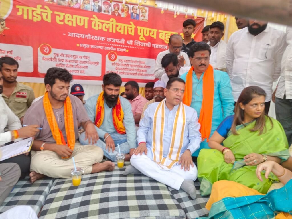 आज दिनांक २९ एप्रिल रोजी सायंकाळी ५ वाजता श्री आदित्य शिंदे व श्री जोतिराम क्षिरसागर यांनी मागील पाच दिवसांपासून चालू असलेले अमरण उपोषण स्थगित केले. उपोषण स्थळी मा. आ. अभिमन्यूजी पवार, भाजप जिल्हाध्यक्ष श्री देवीदासजी काळे, श्री नरेंद्र बोरा, SDO नरे मॅडम, मनवा उपायुक्त श्री देवीदास जाधव, DYSP श्री रणजित सावंत साहेब तसेच असंख्य गोरक्षक व हिंदुत्ववादी कार्यकर्ते उपस्थित होते.