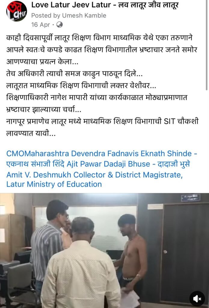 या प्रकरणात भोसले हे शिक्षण विभागातील निवृत्त अधिकारी असून, त्यांनी 23 एप्रिल 2025 रोजी शिक्षण आयुक्तांची भेट घेत संपूर्ण पुरावे सादर केले. आयुक्तांनी पारदर्शक चौकशीचे आश्वासन दिले असून, यावेळी माध्यमिक शिक्षण संचालक संपत सूर्यवंशी उपस्थित होते.