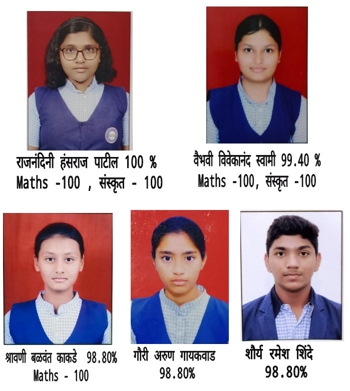 या सर्व यशस्वी विद्यार्थ्यांचे व पालकांचे विद्यालयाचे संचालक श्री. राजेंद्र कोळगे सर, सर्व संचालक मंडळ, कार्यालयीन व्यवस्थापक श्री. आशिष कोळगे सर, मुख्याध्यापिका सौ. सोनाली कुलकर्णी, उपमुख्याध्यापिका सौ. सुलभा जोशी, तसेच सर्व शिक्षकवृंदांनी मनःपूर्वक अभिनंदन केले आहे.