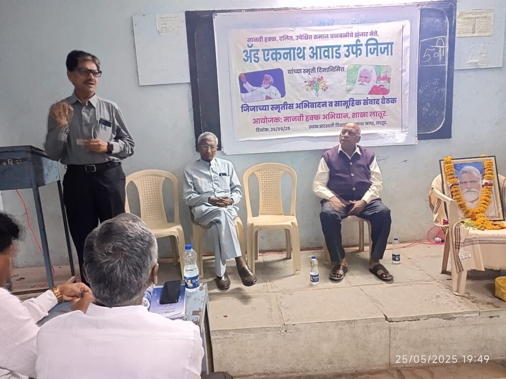 मानवी हक्क अभियान शाखा लातूर यांच्या वतीने दलित, कष्टकरी यांचे कैवारी ऍडव्होकेट एकनाथ आवाड यांच्या स्मृतिदिनानिमित्त लातूर येथील सरस्वती विद्यालयात जेष्ठ विचारवंत मा. डॉ. सुरेश वाघमारे यांच्या अध्यक्षतेखाली आवाड यांच्या विचारावर प्रेम करणाऱ्या कार्यकर्त्यांची बैठक आयोजित करण्यात आली होती. यावेळी माजी प्राचार्य माधव गादेकर, ज्येष्ठ पत्रकार मा. रामराव गवळी, मा. डॉ. शिवाजीराव जवळगेकर सर, ‘लसाकम’ संघटनेचे नेते नरसिंग घोडके , प्रा. डॉ. बाळासाहेब गोडबोले , दिनकर मस्के, छगन घोडके , बालाजी साबळे यांची उपस्थिती होती.पुढे बोलताना वाघमारे सर म्हणाले की, आवाड साहेबांनी आंबेडकरी विचारधारेवर चळवळ चालवली. शोषित व दुबळ्या समाजाला ताकद देण्याचे कार्य केले, राज्यातील सामाजिक स्वयंसेवी संस्थांना सामाजिक कार्यात गुंतवले, हजारो कार्यकर्ते निर्माण झाले, गायरान जमीन भूमिहीन लोकांना मिळवून देण्यासाठी शासनाकडे योग्य पुराव्यासह पाठपुरावा केला. त्यामुळे शासनाने शासकीय परिपत्रक काढले, भूमिहीन हजारो कुटुंबे जमिनीचे मालक झाले. न्यायासाठी संघर्ष कसा करावा याचे प्रशिक्षण त्यांनी कार्यातून दिले. या प्रसंगी त्यांचे कार्यपुढे घेऊन जाण्यासाठी कार्यकर्त्यांनी पुढे यावे असे आवाहनही त्यांनी केले.ज्येष्ठ पत्रकार रामराव गवळी म्हणाले की एकनाथ आवाड यांनी शोषिताच्या मूलभूत प्रश्नावर जन आंदोलन उभारले, संघर्षात्मक व रचनात्मक चळवळ चालविली. आपत्तीच्या काळात लातूरच्या भूकंप कार्यक्षेत्रात मोठ्या प्रमाणात मदत मिळवून दिली. महिलांना संपत्तीत वाटा मिळावा यासाठी जनजागृतीची मोहीम उभारली. असेही त्यांनी सांगीतले. याप्रसंगी माजी प्राचार्य मा. डॉ. माधव गादेकर म्हणाली की, विविध शोषित समाजाच्या संघटनांना एकत्र करण्याची ताकद आवाड साहेबात होती. आणि त्या पद्धतीचे कार्य त्यांच्या आंदोलनात दिसून आले. आज त्या कार्याची नितांत गरज आहे. तसेच या कार्यक्रमा दरम्यान मा. डॉ. शिवाजी जवळगेकर, नरसिंग घोडके, बालाजी साबळे, छगन घोडके यांची समायोजित भाषणे झाली.कार्यक्रमाचे प्रास्ताविक बी.पी. सूर्यवंशी यांनी केले तर आभार शिवदर्शन सदाकाळे यांनी मांडले. कार्यक्रम यशस्वीतेसाठी बालाजी साळुंखे, दिनकर मस्के, अशोक तोगरे , शिरीष दिवेकर, जयवंत जंगापल्ले, भारत वाघमारे यांनी प्रयत्न केले.