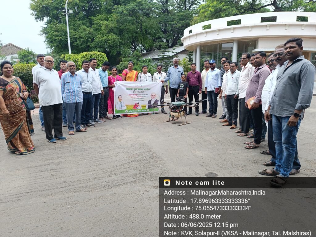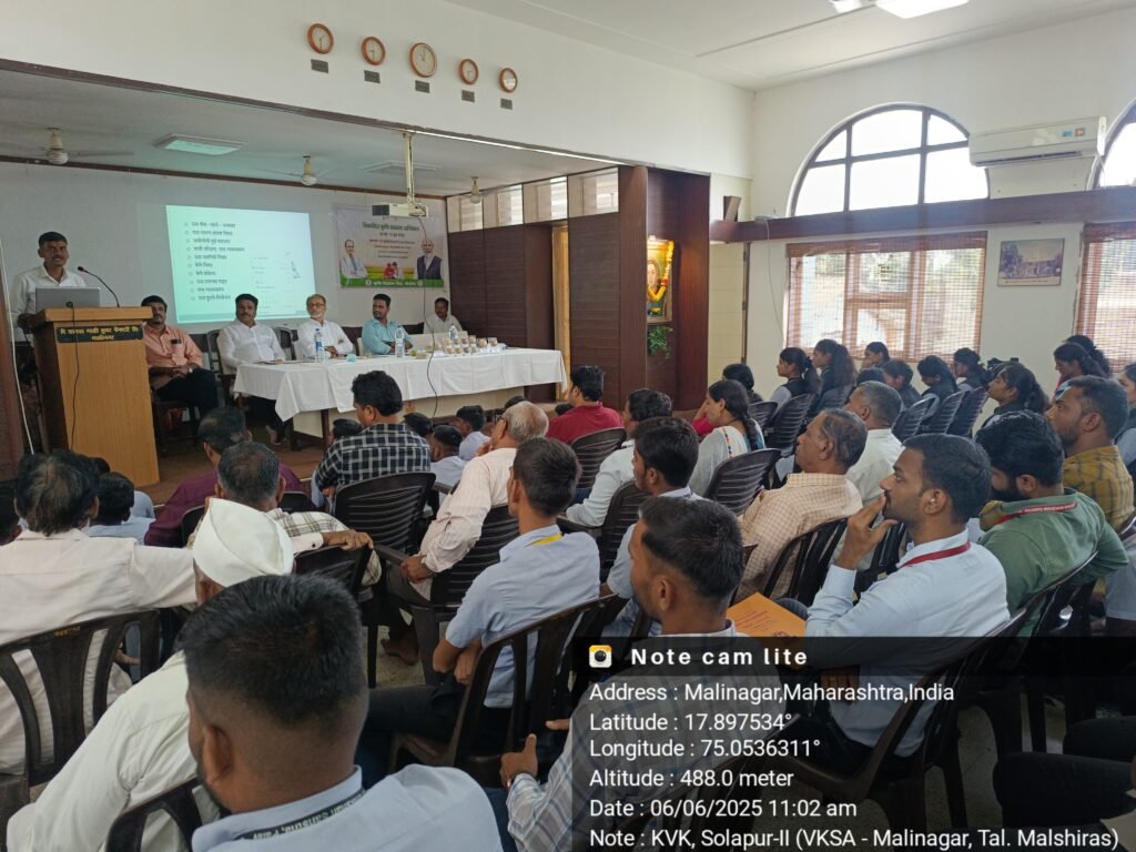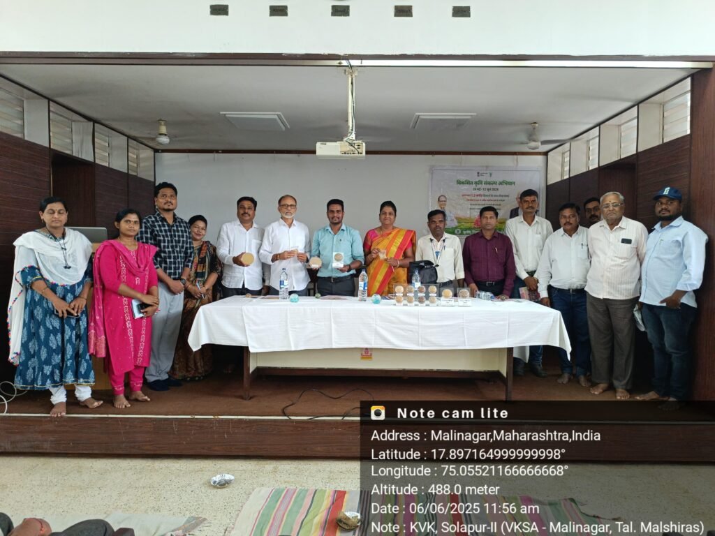 आधुनिक कृषि तंत्रज्ञान आणि खरीप हंगाम पूर्व नियोजन प्रसारासाठी विकसित कृषी ‘संकल्प अभियान दि. २९ मे ते १२ जून २०२५ या दरम्यान सोलापूर जिल्ह्यातील सर्व तालुक्यांमध्ये कृषि संशोधन विस्ताराचे कार्य महात्मा फुले कृषि विद्यापीठ राहुरी अंतर्गत कृषी विज्ञान केंद्र मोहोळ, कृषी विभाग, महाराष्ट्र शासन आणि राष्ट्रीय डाळिंब संशोधन केंद्र सोलापूर, राष्ट्रीय भरड धान्य संशोधन संस्था, सोलापूर यांच्या संयुक्त विद्यमानाने केले जात आहे.