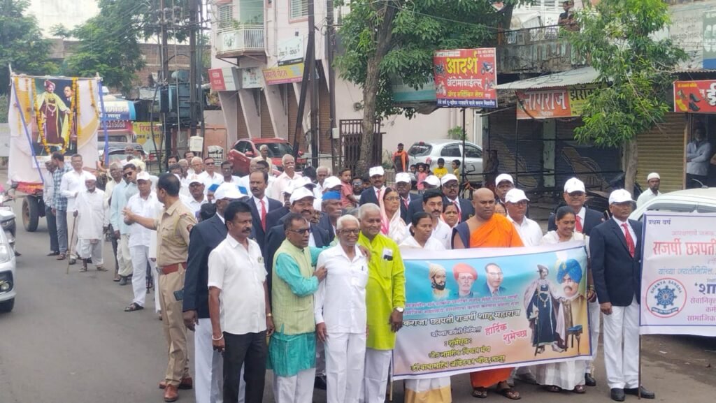 छत्रपती शाहु महाराज यांच्या १५१व्या जयंती निमित्त जेष्ठ नागरीक विचारमंचा चे वतीने आजडाॕ. बाबासाहेब आंबेडकर चौकातुन छत्रपती शाहुमहाराज यांच्या प्रतिमेची मिरवणूक हालगी च्या धुमधडाक्यात साजरी करण्यात आली.मिरवणुकीचा समारोप छ. शाहुमहाराज चौक येथे शाहु महाराजांना पुष्पहार घालुन अभिवादन केल्यानंतर पु. भिक्खु पय्यानंद थे म्हणाली सामाजिक न्यायाचा व समतेचा विचार शाहु महाराजांनी रुजवला. या विचारामुळेच शाहु राजे महान आहेत तोच समतेचा व सामाजिक न्यायाचा विचार या काळात रुजवणे गरजेचे आहे म्हणुन भारत सरकारने छत्रपती शाहु महाराजांना भारत रत्न देवुन गौरविण्यात यावे आशी आग्रही मागणी करत आपले मनोगत व्यक्त केले.