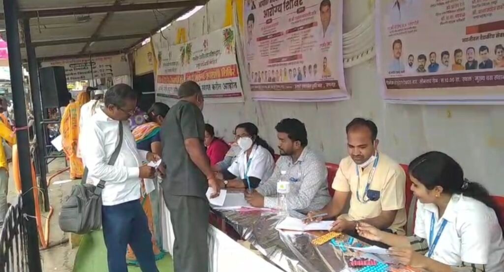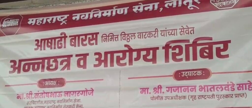 लातूर : आषाढी एकादशीच्या पार्श्वभूमीवर पंढरपूरला जाणाऱ्या व तेथून परत येणाऱ्या वारकऱ्यांची सोय लक्षात घेऊन उमाटे कुरिअर आणि महाराष्ट्र नवनिर्माण सेनेच्या वतीने लातूरच्या बस स्थानक येथे भव्य मोफत अन्नदान तथा आरोग्य शिबिराचे आयोजन करण्यात आले आहे.