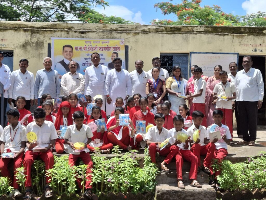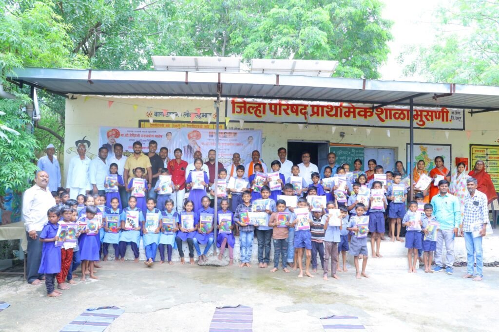 मान्यवरांच्या हस्ते विद्यार्थ्यांना शैक्षणिक साहित्यासह खाऊचे वाटप करण्यात आले. कार्यक्रमाचा समारोप संस्थेचे अध्यक्ष ॲड. बाबुरावजी मोरे यांनी केले तर सूत्रसंचालन शाळेतील सहशिक्षक कांबळे, तर आभार शाळेचे मुख्याध्यापक मुळे सरांनी केले हा कार्यक्रम पार पाडण्यासाठी शाळेतील सर्व शिक्षक व शिक्षकेतर कर्मचारी यांनी मोलाचे सहकार्य केले. दोन्ही शाळेतील विद्यार्थी शालेय साहित्य भेटल्याने आनंदी झाल्याचे दिसून आले.