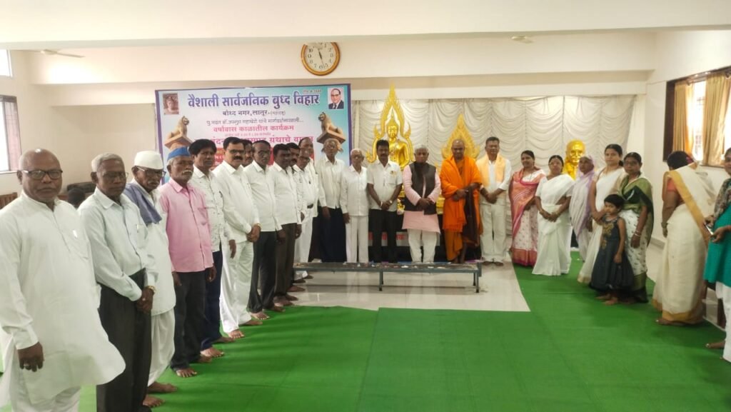 बुद्ध धम्म वर्षावास पुनित पर्वा निमित्ताने वैशाली बुद्धविहार बौद्धनगर लातूर येथे पु.भिक्खु सुमेधजी नागसेन यांच्या धम्मदेसनेचे आयोजन करण्यात आले.प्रारंभी भ.बुद्ध व डाॕ.बाबासाहेब आंबेडकर यांच्या प्रतीमांना पुष्प व पुष्पमाला आर्पण करण्यात येवुन बुद्धवंदना घेण्यात आली.