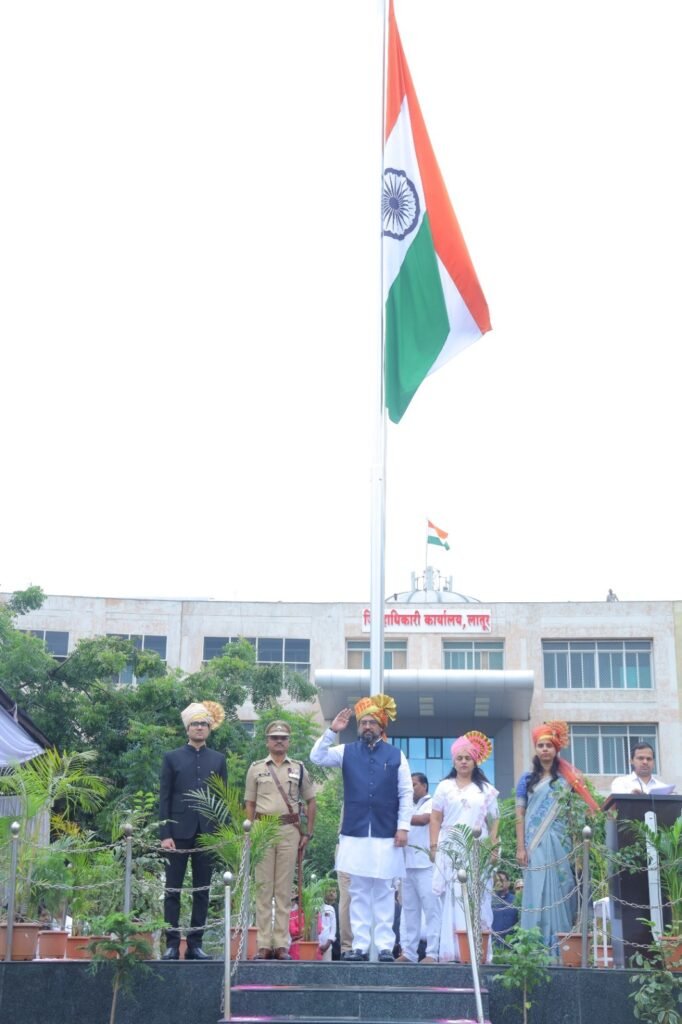 लातूर येथे ७९ व्या स्वातंत्र्य दिनी पालकमंत्री शिवेंद्रसिंहराजे भोसले यांच्या हस्ते ध्वजारोहण
