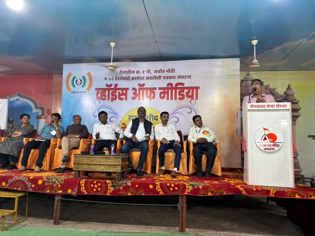 अमळनेर येथील मंगलग्रह मंदिर परिसरात व्हॉईस ऑफ मीडिया व व्ही.ओ.एम. इंटरनॅशनल फोरमचा दोन दिवसीय राज्यस्तरीय केडर कॅम्प उत्साहात संपन्न झाला. राज्यभरातून आलेल्या सुमारे २५० प्रमुख पदाधिकाऱ्यांच्या सहभागामुळे पत्रकार संघटनात्मक चळवळीला नवी ऊर्जा मिळाली.