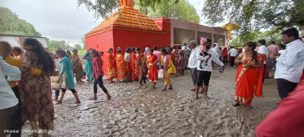 मागे दोन वेळेस या रस्त्याचे डांबरीकरण रस्ता झाला पण तो निकृष्ट रस्ता वाहून गेला तरीपण त्यानंतर येथील नगरपंचायला हा देवीला जाण्याच्या रस्ता सिमेंट रोड करता आला नाही त्यामुळे यावर्षी दोन दिवसापासून सतत धार पाऊस असल्यामुळे सर्व रस्ता चिखलमय झाला असून या ठिकाणी येणाऱ्या भक्तांना कसरत करत चिखल तुडवत दर्शनासाठी जात असून अशी परिस्थिती पाहून किमान नगरपंचायत ने सिमेंट रोड करून भविष्यातील भक्तांची अडचण पाहून सिमेंट रोडचे काम करावे अशी मागणी भक्तगणातून केली जात आहे