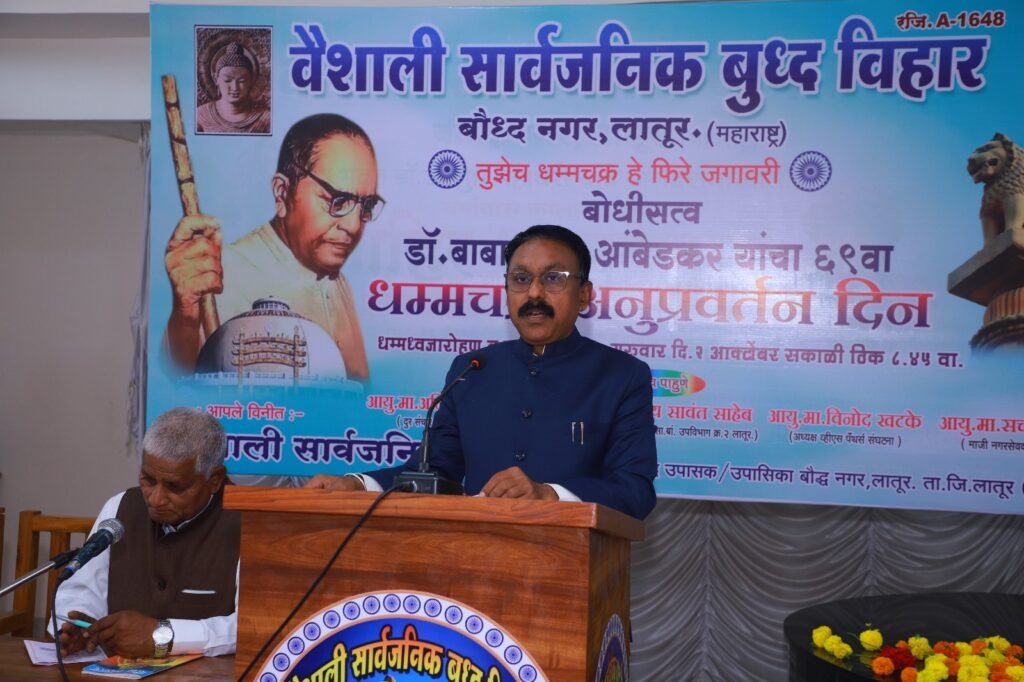 बोधिसत्व डॉ. बाबासाहेब आंबेडकर यांच्या ६९व्या धम्मचक्र अनुप्रवर्तन दिनानिमित्त लातूरातील वैशाली सार्वजनिक बुद्ध विहार, बौद्ध नगर येथे मंगलमय वातावरणात कार्यक्रमाचे आयोजन करण्यात आले. या प्रसंगी तथागत भगवान बुद्ध व डॉ. बाबासाहेब आंबेडकर यांच्या प्रतिमांना पुष्प व पुष्पमाला अर्पण करून अभिवादन करण्यात आले.
