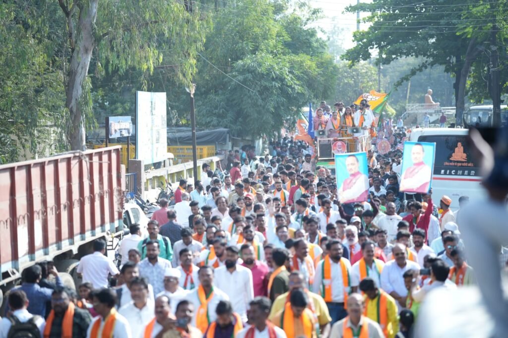 वाद्यांच्या दणदणाटात निघालेल्या या पदयानेने लातूरकरांचे लक्ष वेधून घेतले.या पदयात्रेमध्ये पारंपारिक वेशभूषा केलेल्या बंजारा समाजाच्या महिलांचे नृत्य लक्षवेधी ठरले.या पदयात्रेत शैलेश गोजमगुंडे, शिवसिंह शिसोदिया,ॲड. दिग्विजय काथवटे,बाबासाहेब कोरे,प्रविण सावंत,सुनिल मलवाड,डॉ.भातंब्रे,शामसुंदर मानधना,शीतल मालू,शिरीष कुलकर्णी,वर्षा कुलकर्णी, लालासाहेब देशमुख,बाबू खंदाडे, शैलेश स्वामी,पृथ्वीसिंह बायस, ओम धरणे,व्यंकट पन्हाळे,संगीत रंदाळे,मनोज सूर्यवंशी,अविनाश कोळी,प्रविण कस्तुरे,रवी सुडे, संतोष पांचाळ,मंगेश बिराजदार, दीपक मठपती,संजय जमदाडे, गणेश गवारे यांच्यासह मतदारसंघातील भाजपा, शिवसेना,राष्ट्रवादी काँग्रेस,रिपाई तसेच महायुतीतील घटक पक्षांचे पदाधिकारी आणि कार्यकर्त्यांसह हजारो नागरिकांनी सहभाग घेतला.