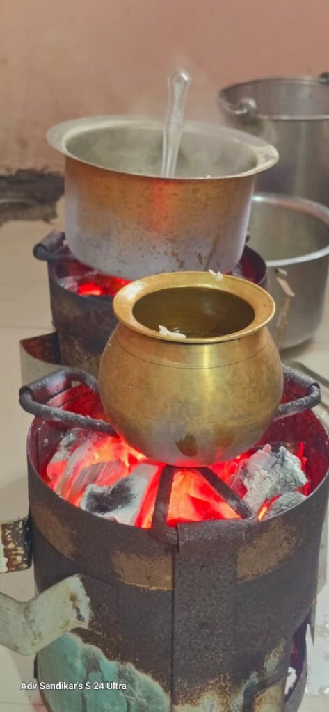 नैवैद्यासाठी चूल किंवा गॅसचा वापर केला जात नाही तर थेट कोळशांची शेगडी वापरून त्यावरच नैवेद्य बनवला जातो. मनोहराचार्य संदीकर यांच्यानंतर वामनाचार्य यांनी ही परंपरा पुढे नेली. त्यांची विद्वत्ता एवढी होती की त्या काळी वामनाचार्यांचे लोहारा अशी गावची ओळख सांगितली जात असे. पुढे लातूर येथे स्थलांतरित झाल्यावर जनार्धनाचार्य संदीकर, हणमंताचार्य संदीकर, व्यंकटेशाचार्य संदीकर आणि आज सहाव्या पिढीतील ॲड गुरुराज संदीकर ही परंपरा भक्तीने आणि श्रध्देने पुढे चालवत आहेत.