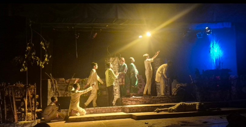 घाटावरील वातावरण, कुंड, लाकडी चितेचा परिसर, गावकऱ्यांची राहणी आणि बदलत्या प्रसंगांना अपेक्षित पार्श्वभूमी—सर्व काही इतक्या वास्तववादी पद्धतीने उभे राहते की प्रेक्षक पहिल्या क्षणापासून नाटकाच्या विश्वात ओढला जातो.