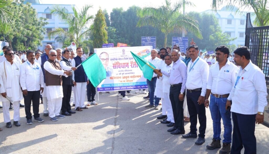 लातूर, दि. 26 नोव्हेंबर — देशाच्या लोकशाहीची आधारभूत रचना असलेल्या भारतीय संविधानाबद्दल जनजागृती करण्याच्या उद्देशाने सामाजिक न्याय व विशेष सहाय्य विभागाच्या वतीने आज संविधान सन्मान रॅलीचे भव्य आयोजन करण्यात आले. सामाजिक न्याय भवन येथून हिरवा झेंडा दाखवून या रॅलीला प्रारंभ झाला आणि रॅली डॉ. बाबासाहेब आंबेडकर पार्क येथे उत्साहात समारोपास पोहोचली.