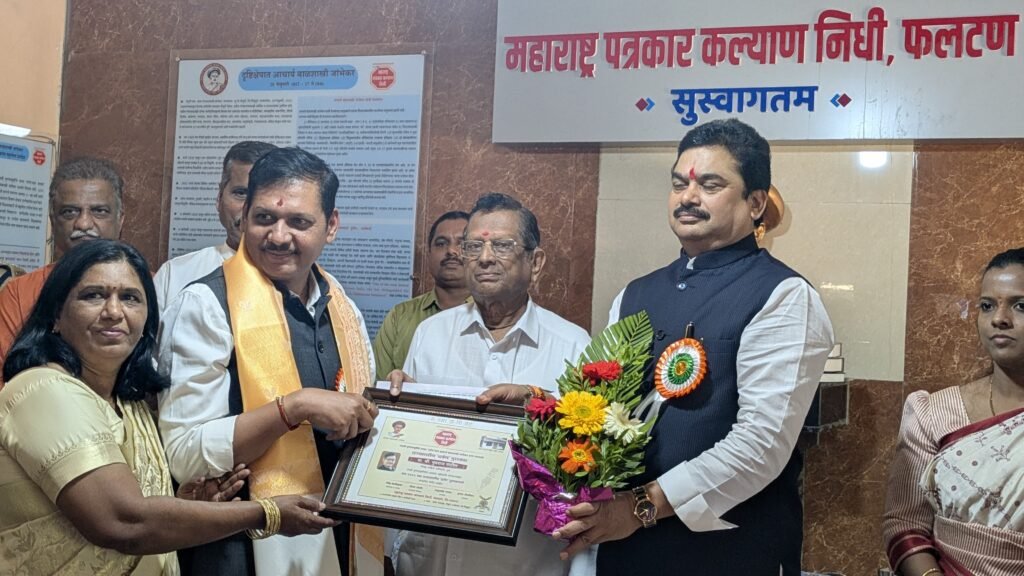 मराठी पत्रकारितेचे आद्य प्रवर्तक आचार्य बाळशास्त्री जांभेकर यांच्या स्मृतीप्रित्यर्थ महाराष्ट्र पत्रकार कल्याण निधी, फलटण यांच्या वतीने देण्यात येणारा राज्यस्तरीय प्रतिष्ठेचा ‘दर्पण’ पुरस्कार पुणे जिल्हा माहिती अधिकारी युवराज पाटील यांना महाराष्ट्र विधान परिषदेचे सभापती ना. प्रा. राम शिंदे यांच्या हस्ते प्रदान करण्यात आला.