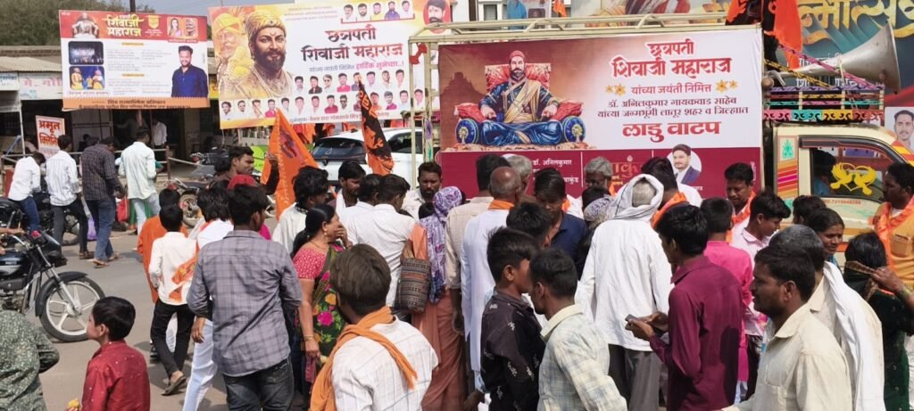 निलंगा : स्वराज्याचे संस्थापक, रयतेचे खरे राजे आणि अखंड प्रेरणास्थान असलेल्या यांच्या जयंतीनिमित्त निलंगा शहरात सामाजिक बांधिलकीचा आणि सेवाभावाचा सुंदर अविष्कार पाहायला मिळाला. डॉक्टर अनिलकुमार गायकवाड सामाजिक सेवा कुंडच्या वतीने शहरातील विविध भागात लाडू वाटप करून शिवप्रेमाचा आणि सामाजिक एकात्मतेचा गोड संदेश नागरिकांपर्यंत पोहोचविण्यात आला.