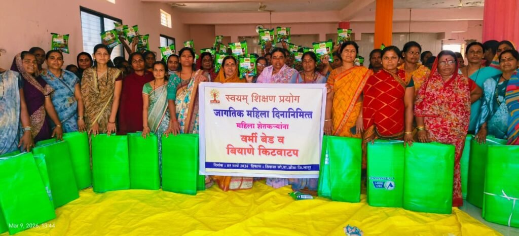 औसा : जागतिक महिला दिनानिमित्त ९ मार्च २०२६ रोजी मोजे शिंदाळा लो. (ता. औसा जि लातूर) येथे स्वयंम शिक्षण प्रयोग संस्थेच्या वतीने शेतकरी महिलांसाठी मोफत वर्मी बेड व भाजीपाला बियाणे किट वाटप कार्यक्रम उत्साहात संपन्न झाला.