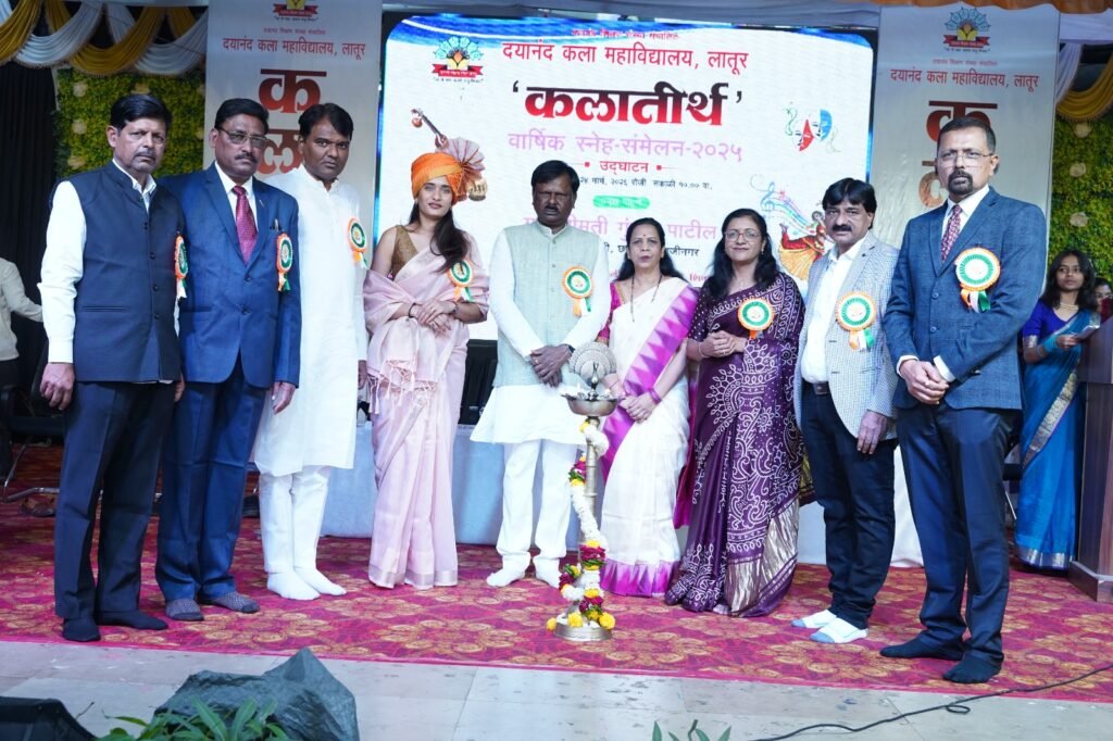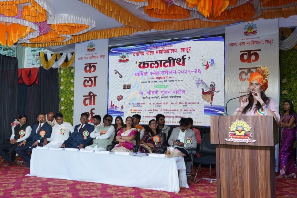 लातूर: दयानंद कला महाविद्यालयात वार्षिक स्नेह संमेलन ‘कलातीर्थ २०२६’ चे आयोजन करण्यात आले. या संमेलनाचे उद्घाटन प्रमुख पाहुणे मा. श्रीमती गुंजन पाटील यांच्या हस्ते संपन्न झाले. यावेळी बोलताना गुंजन पाटील यांनी तंत्रज्ञान आणि मानवी अनुभव यातील फरक अधोरेखित केला. त्या म्हणाल्या की, “एक मिनिटाच्या रिल्समध्ये शिक्षण आणि माहिती देणाऱ्या अनेक लिंक येतात. चॅट जीपीटी (ChatGPT) विचारलेली माहिती नक्कीच देते, पण अनुभवाचे बोल फक्त शिक्षकच देऊ शकतात. जगाशी लढण्यासाठी लागणारी ताकद केवळ शिक्षकच देऊ शकतात. जबाबदारी कमी करण्याचे काम शिक्षकांमुळे शक्य होऊ शकते.” यावेळी त्यांनी विद्यार्थ्यांना जीवनामध्ये संयम (पेशन्स) ठेवण्याचा सल्ला दिला.