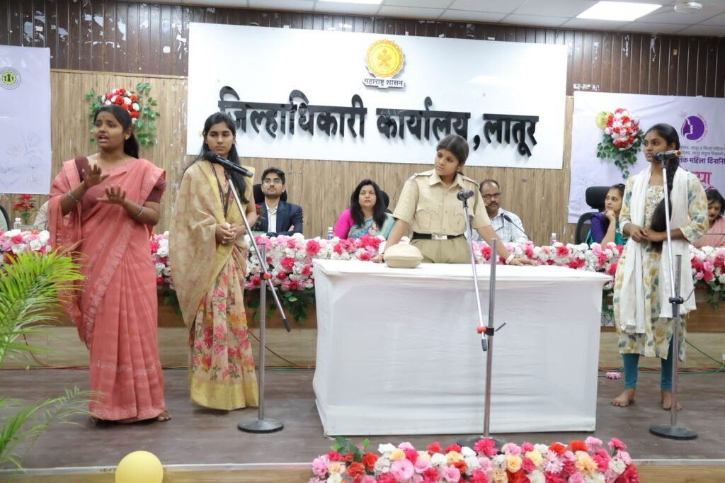 लातूर दि. ७ जिल्हाधिकारी वर्षा ठाकूर-घुगे यांच्या संकल्पनेतून जागतिक महिला दिनाच्या पूर्वसंध्येला विविध क्षेत्रातील महिलांचा गौरव करण्यासाठी ‘मान्विथा कर्मसिध्दी पुरस्कार वितरण’ सोहळ्याचे आयोजन करण्यात आले होते. या कार्यक्रमात दयानंद कला महाविद्यालयाच्या विद्यार्थ्यांनी महिला सक्षमीकरण व सायबर क्राईमला आळा बसवणारे अत्यंत प्रभावी जनजागृतीपर पथनाट्य सादर केले.